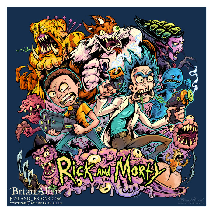 Image Description: • This was created for an official Rick and Morty design contest, and the design won third place! The shirt will be available for sale in the official Rick and Morty outlets. I'm super-thrilled to have my artwork hand-picked by the creators of one of my favorite shows. In addition to the prize money, I'll also be getting a sweet Rick and Morty comic book autographed by the creators!